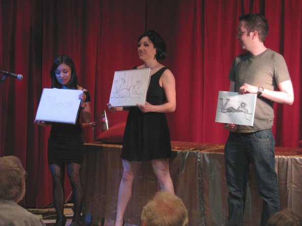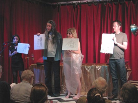 Our first contest was the opposite hand contest, where if you’re left handed you draw with your right, and if you’re right right handed you draw with your left, and if you’re ambidextrous you should . . . I don’t know, email me some jokes, cause, I’m running out of clever things to say in this portion. The two winners got some sort of mystery concoction from Russell. Lord knows what was in it.