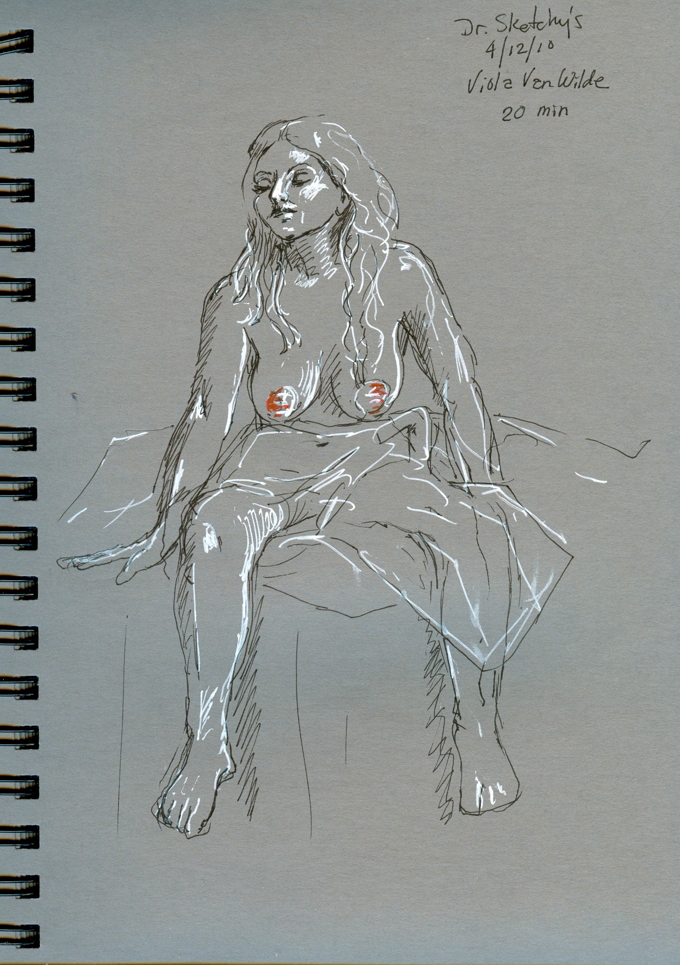 Special thanks to Viola Van Wilde and Brian K. for seriously going above and beyond for this session! Big thanks as well to our generous sponsors Atomic Books, Artist & Craftsman Supply, and Baby Tattoo Books. Thanks to Bill for doing door and filming for the Dr. Sketchy’s Baltimore documentary, to Jeff for taking all the amazing photos you see above, and to Russell for helping everyone get sloshed. And thanks to everyone who came out, Peaks geeks and otherwise!