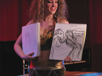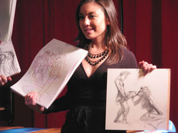 Our second contest of the evening, keeping with a rising theme of decadence that would shortly be squashed by a soon-to-rise dark horse theme of pure dorkiness, was in honor of Caligula’s birthday, i.e., your best incorporation of Caligula for the first ten-minute pose. The prize? The recent Taboo issue of Retro Lovely featuring some gasp-inducing photos of the founder of Gilded Lily Burlesque, Maria Bella, along with many other retro-ed out pin-up models.  Retro Lovely was donated to us by our generous sponsor, Atomic Books, which, regardless of whether they were our sponsor or not, is literally the coolest independent comic shop we’ve ever come across, and we’ve done enough traveling where that statement shouldn’t be taken lightly.