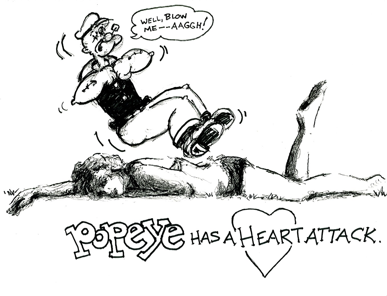 “—and the contest is, ‘Incorporate your best rendition of the death of any comic character.  It can be Popeye, Batman, someone from Tiny Toons, Little Abner, whatever . . .”