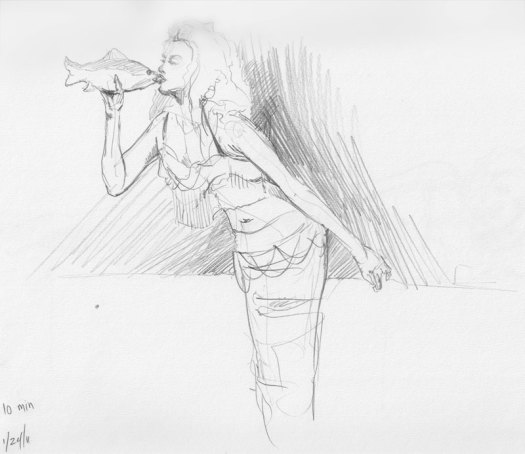 And that was the end of our evening and the beginning of another long wait till the next Dr. Sketchy’s. We thought about doing one on Valentine’s Day, which is when our next session would have fallen, but in the end we decided not to risk it—if no one showed up, it would have sucked for the model, so it seemed best stay on the safe side.