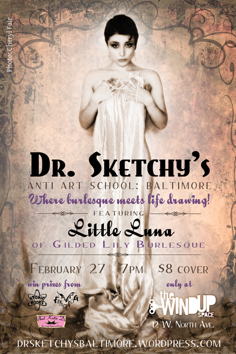 Little Luna is one of our most popular models ever, so don’t miss her last session.  Doors at 6, start at 7.  18+ to draw, 21+ to drink, 92+ to set Russell’s beard on fire for a $1.
