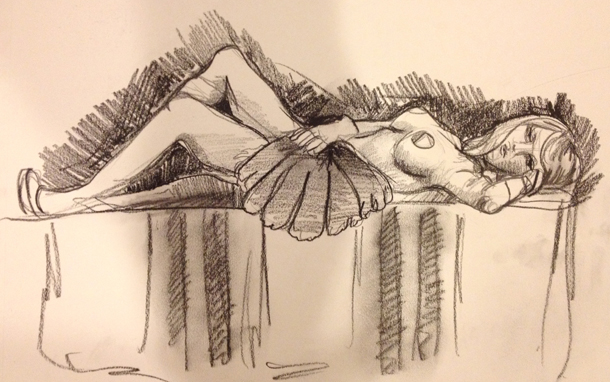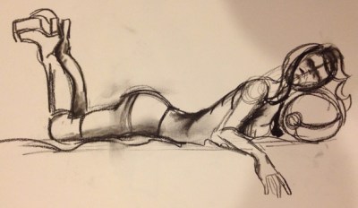 Once everyone’s drawing hands were nicely warmed up, we took a quick breather so folks could top of their beers and sneak a coffin nail, and then it was time for the 5-minute poses.