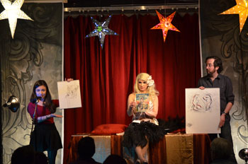 Another break so folks could call in flat tires/working late/stuck-in-traffic to their significant others, and then Candy del Rio did a burlesque number for ya.  The video camera messed up though, so if you missed it—well, that’s what you get.