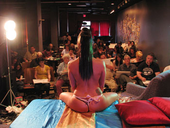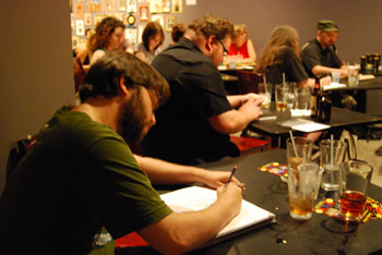 We’d like to thank Maria Bella for an absolute amazing session (and horrible hangover the next day); our amazing sponsors Atomic Books, Baby Tattoo Books, Artist & Craftsman Supply, and our brand new sponsor Flying Dog Brewery(!); Stiger and Fred for helping me with all those pesky chairs; Tiffany, who tried (all the way from Houston, Texas) to find us a last minute photographer; the many folks who let us know they could help in the future if there’s ever another emergency; Russell for slinging drinks & tunes; Little Luna and Lauren Marleaux of Gilded Lily Burlesque for keeping me company at the bar; and Alexis for deftly wielding the microphone on stage.