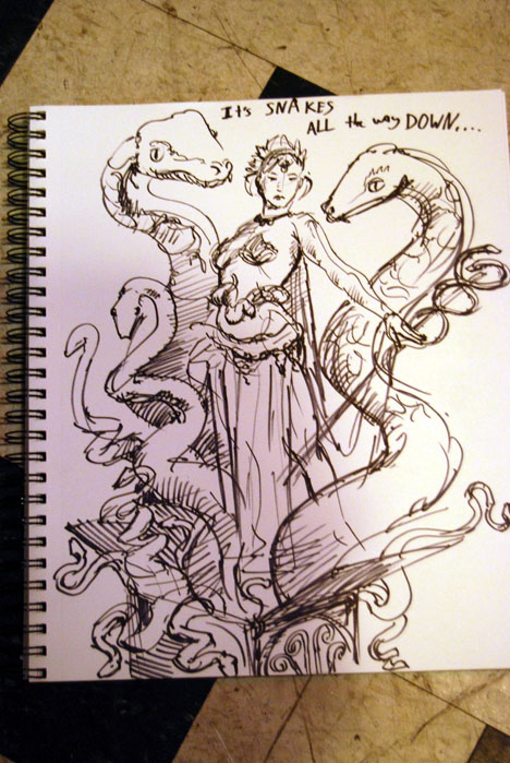 A quick break later it was time for the 5-minute poses, the first of which was the opposite hand contest where if you’re right-handed you draw with your left, if you’re left-handed you draw with your right, and if you’re ambidextrous you draw with your snake.