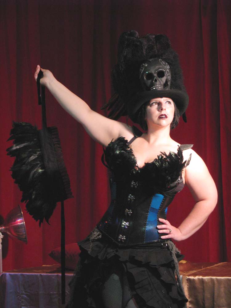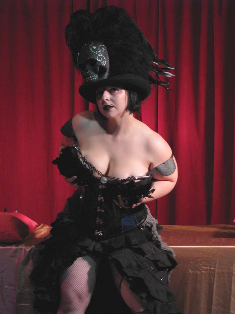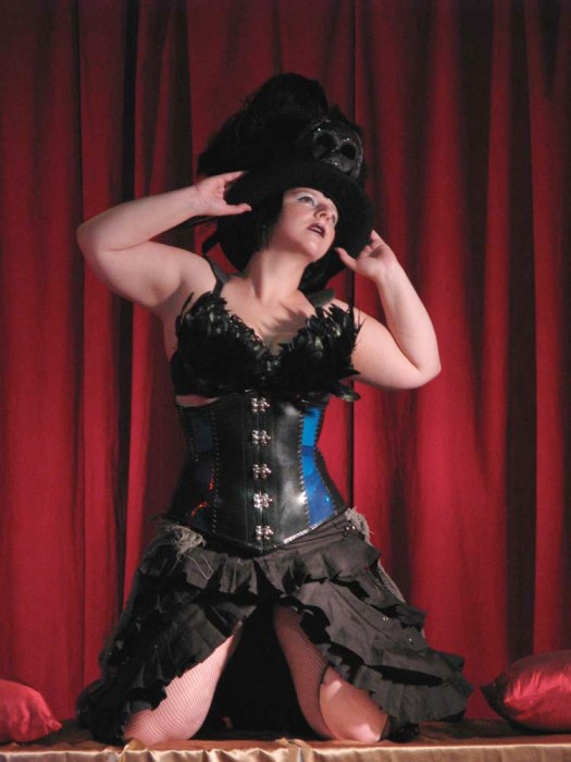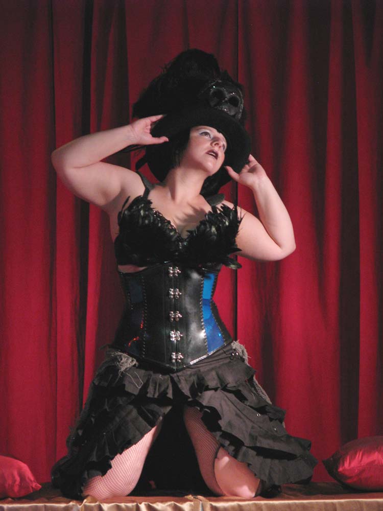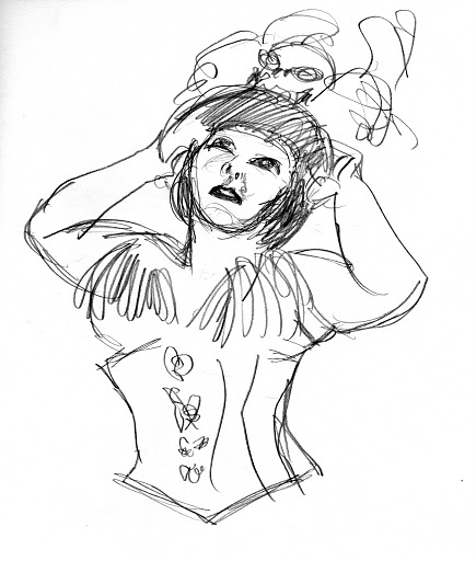 Holy Moly. I really need to try harder to do some drawing myself at Sketchy’s once the door slows down and the poses get longer. You don’t get opportunities to draw folks like Dahlia Derriere, or any of our other models, that often. If Dahlia doesn’t inspire your pencil, well, maybe you should put your time into something else. I honestly can’t think of anything else to say besides that, so let’s just jump right into the 1- and 2-minute poses brought to you not by one, but TWO photographers, Jen Swanson and Jeff Schock. Dahlia’s first look for this desert-themed evening: a Vegas showgirl.