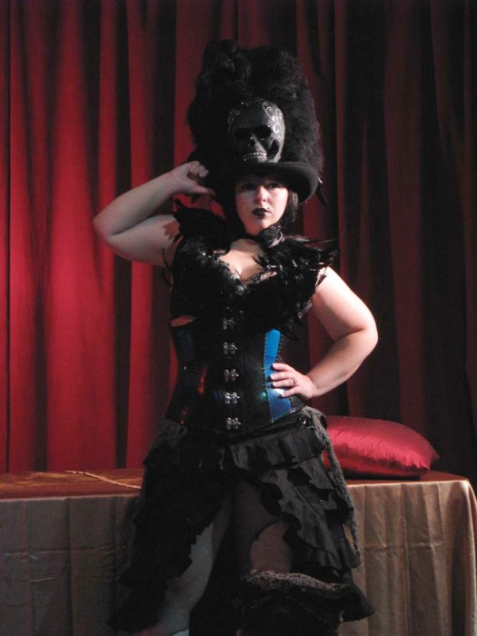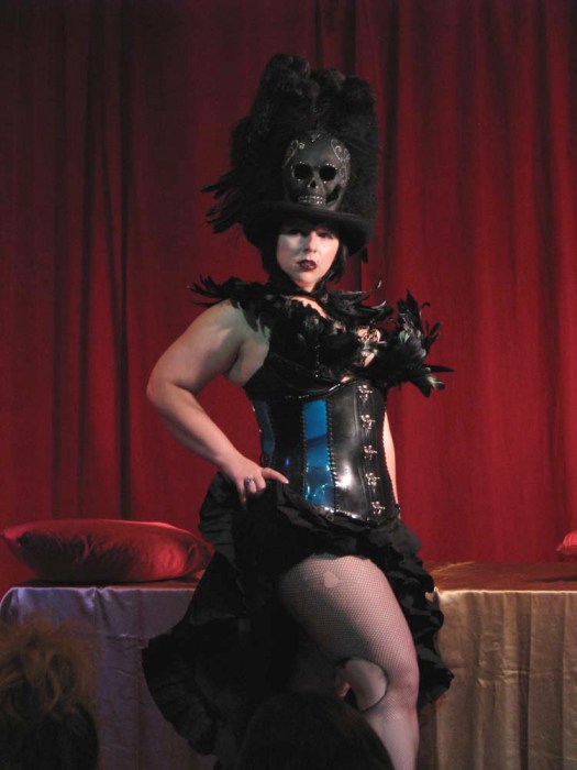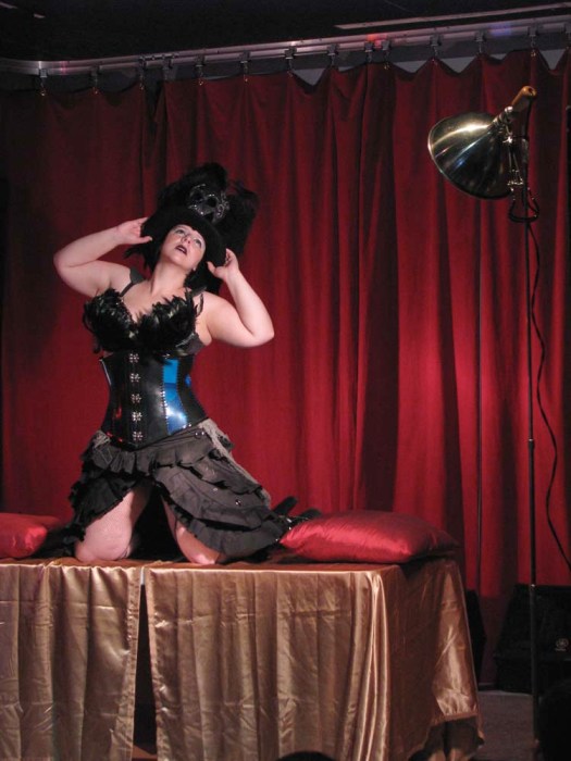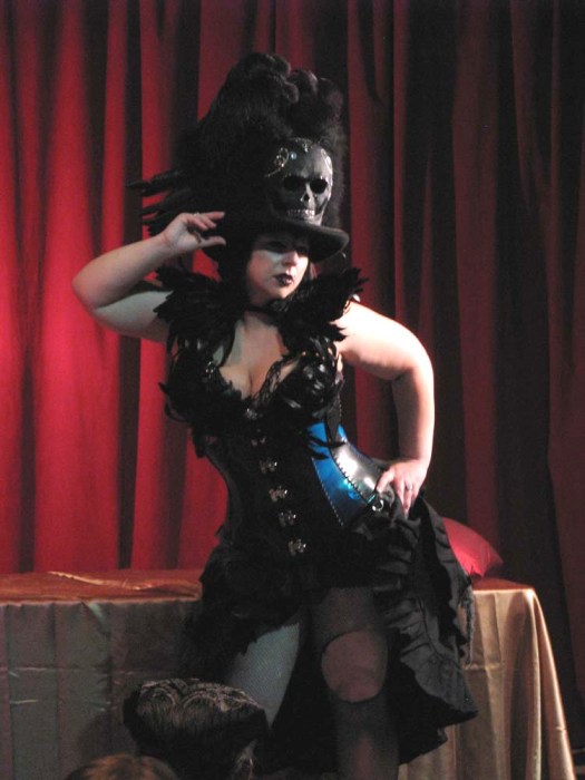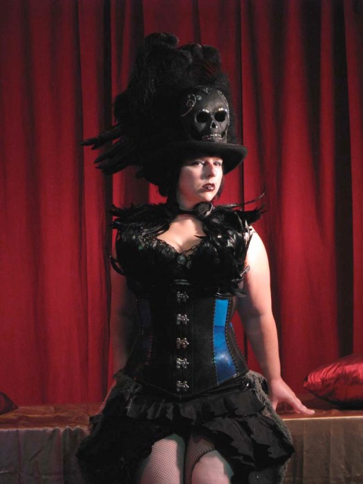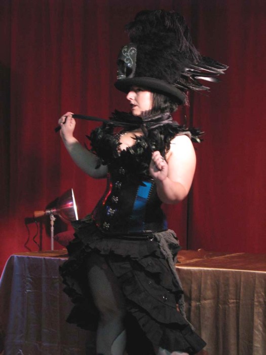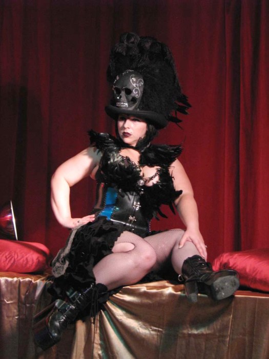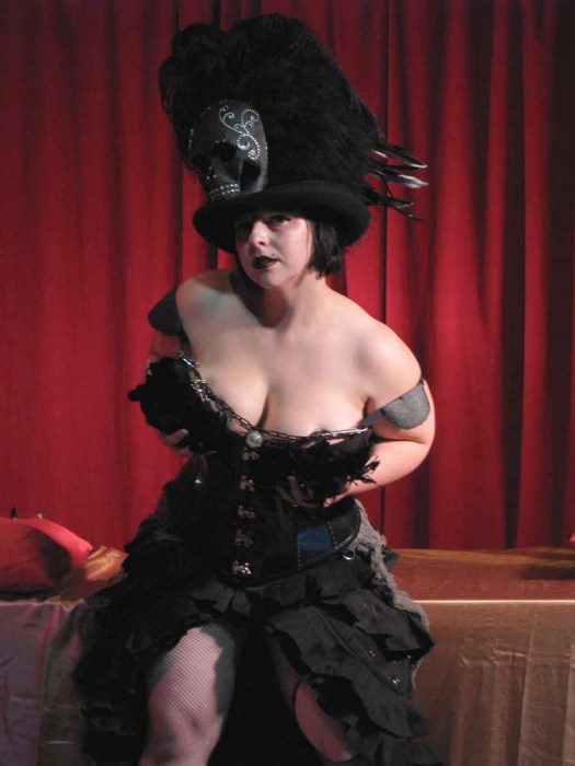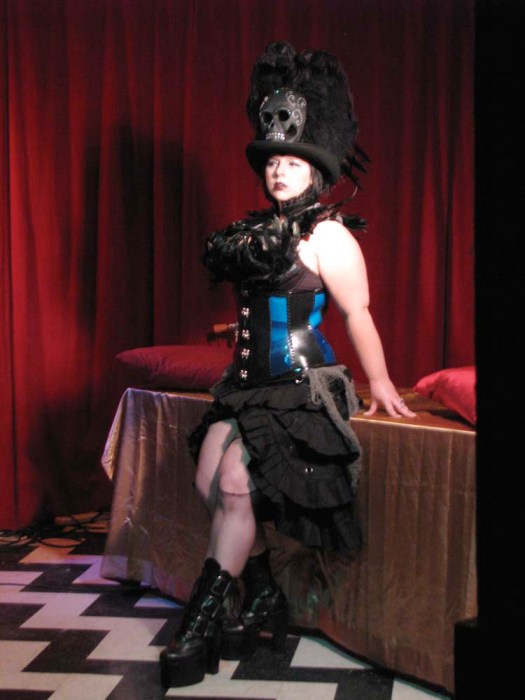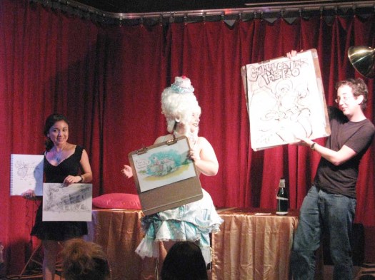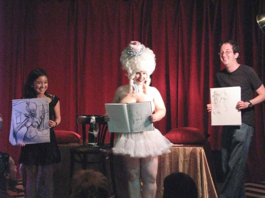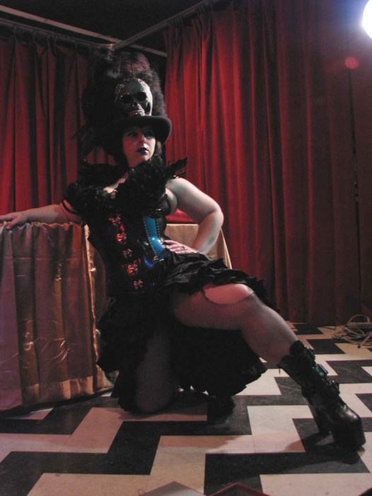 Special thanks to Dahlia Derriere for being our fantastic model; thanks to our sponsors: Atomic Books, Flying Dog Brewery, and Baby Tattoo Books; thanks to Jen Swanson and Jeff Schock for the photos above; thanks to Russell for slinging songs and booze; and thanks to Alexis for driving the microphone.