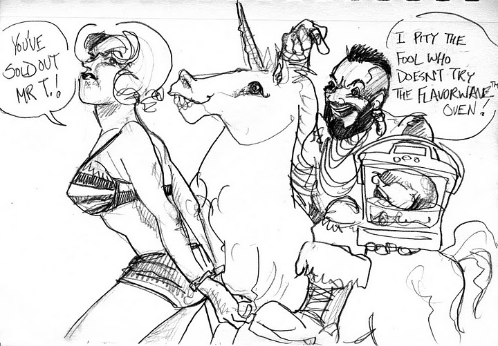 For the last pose of the evening, we did the old random noun contest where somebody in the audience calls out something random—which, err, turned out to be Mr. T on a unicorn.