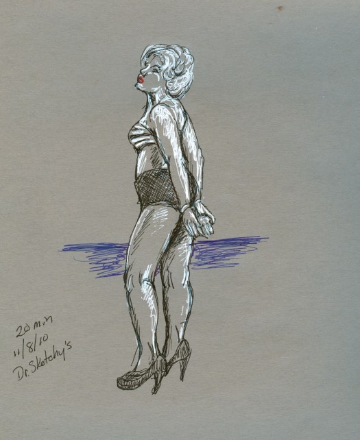 The first 20 minute contest was the best incorporation of a classic board game, since it happened to be Milton Bradley’s birthday. The prizes were two Bristol pads from Artist & Craftsman Supply, which is right across the street on Howard and North. They’re open till 8, so if you happen to need supplies before a Dr. Sketchy’s, hit ’em up.