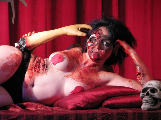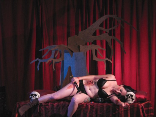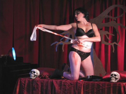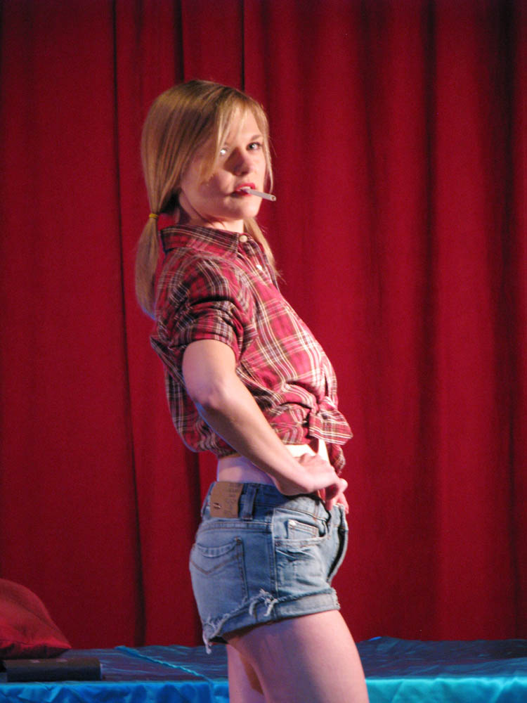 A nice Southern girl, sporting a pair of cut-off jean-shorts and a flannel tied in a knot, accessorized with a moonshine-filled flask, will get me more verklempt than an auctioneer with a mouth full of peanut butter every time. Elle Devene of Gilded Lily Burlesque was that Southern day-dream made flesh, something that’s all the more beautiful when, if you’re actually from the South, you’re well aware the reality is often marred by an entire can of Aqua Net and enough make-up inexpertly applied to make you wonder if you’re talking to a budding Tammy Faye.