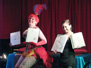 So, since we’re been taking our sweet time to put up the recap of Femme 6’s session with us, consider this the last call for sketches of our lovely model from that session, folks. Scan (or shoot with your camera phone) your drawings and send them to us at drsketchysbaltimore(at)gmail.com, or post them on our Facebook page’s wall. If you haven’t liked our page yet, do yourself a favor and go do that now: we update that page more often than the blog, so if you’d liked us already, you would have gotten a reminder about Poetry in Pasties before now, and you would have seen photos from our last session. (You could have also seen photos earlier if you followed us on Twitter.) But, since you’re reading this blog and we like you, here’s a photo from that night.