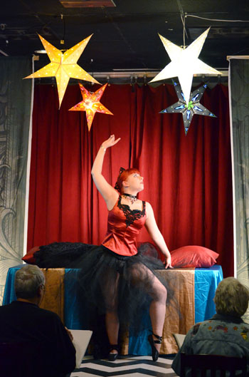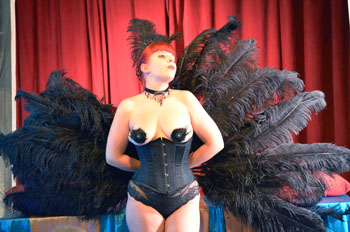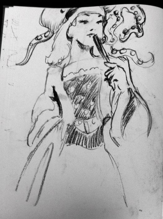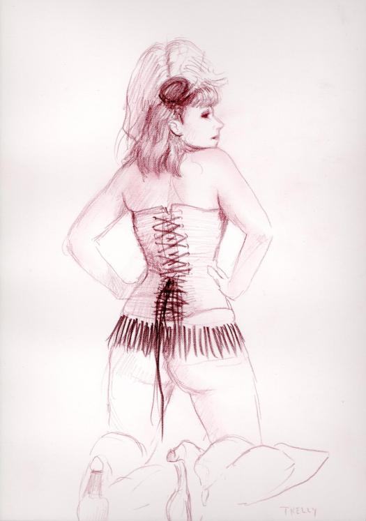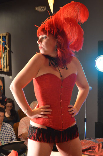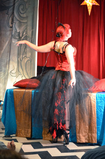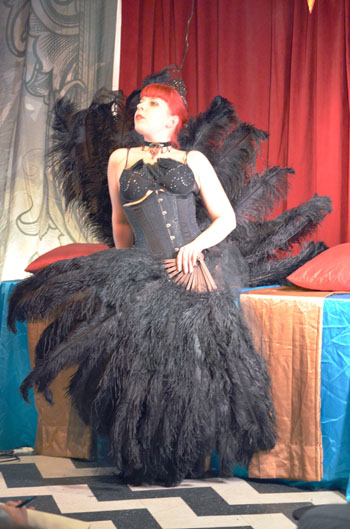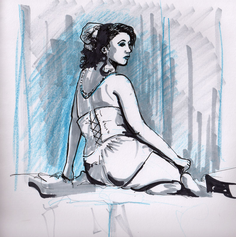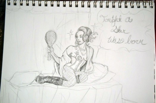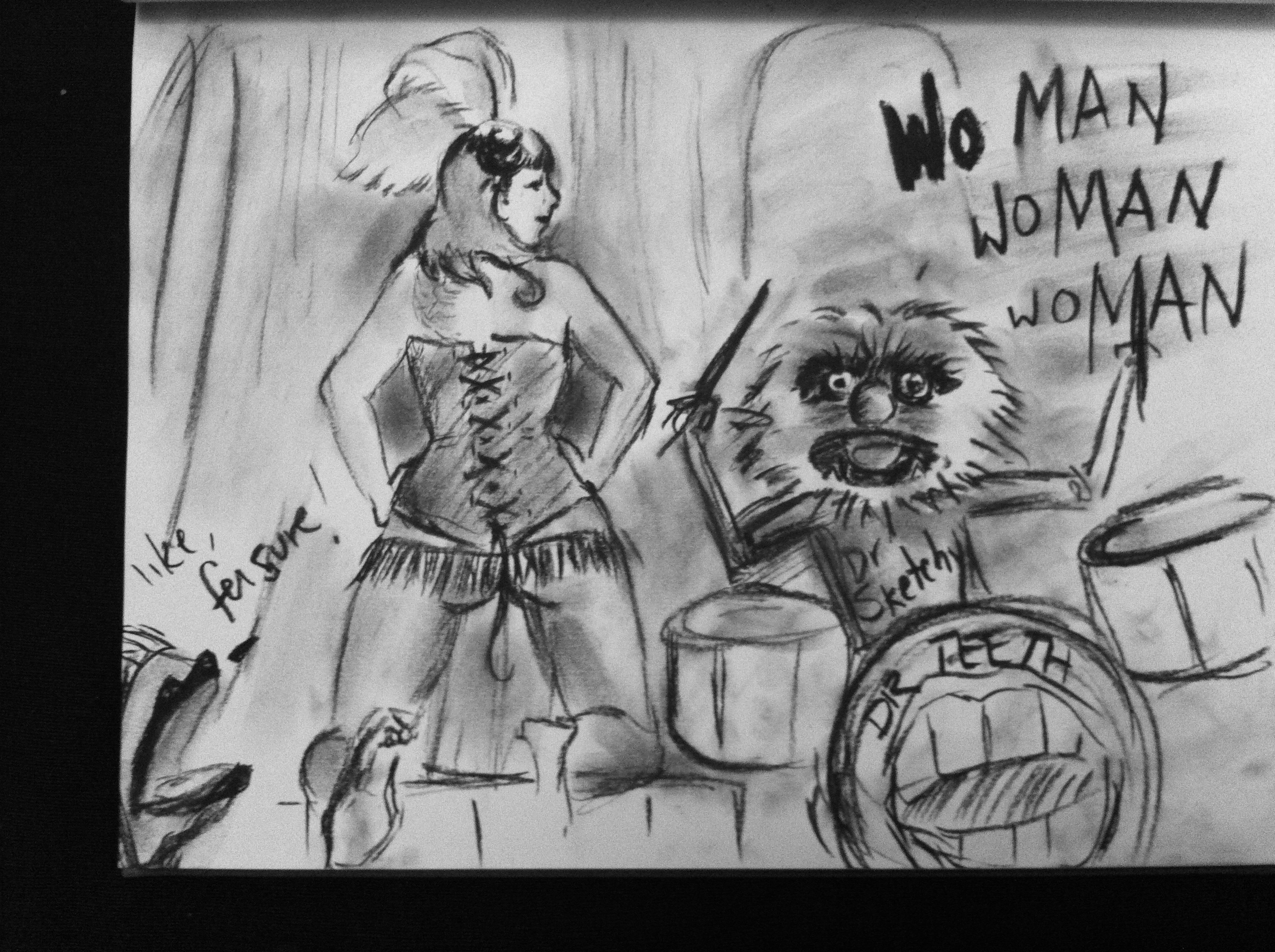 We’d love to take credit for the session be amazing, but in the end, all we did was see her perform a couple times and think, “Wow, she’d make a great model for Dr. Sketchy’s.”