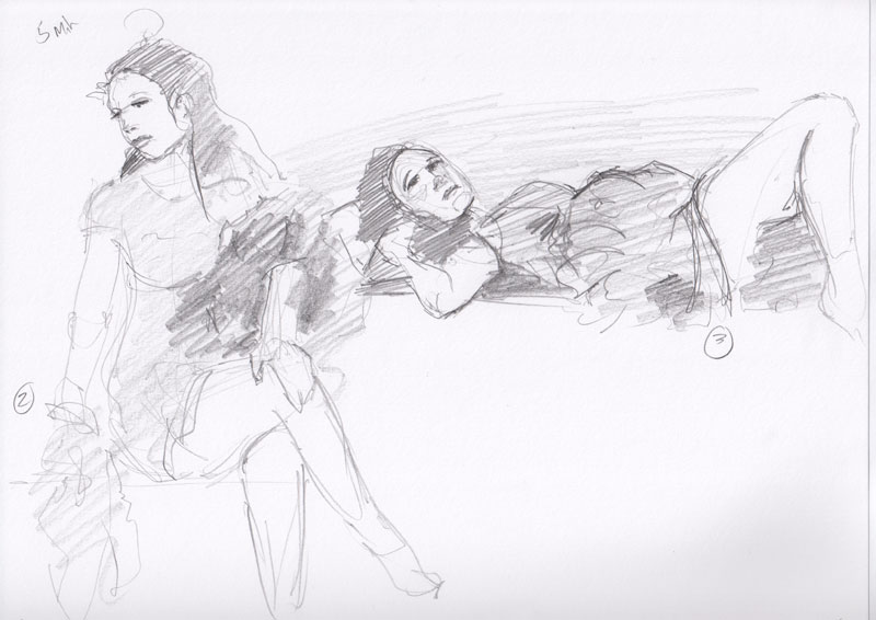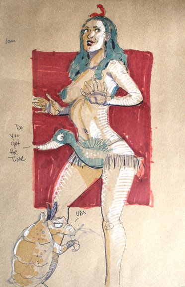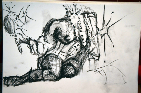 There was a short break for folks to aquire cocktails and dispose of the previous, and then it was time for the 5-minute poses, the first of which was AN ATTACK BY A GIANT DINOSAUR!!!!