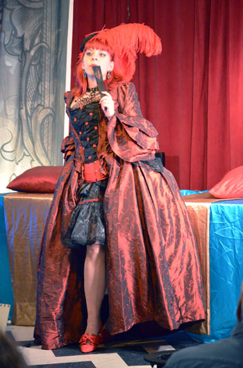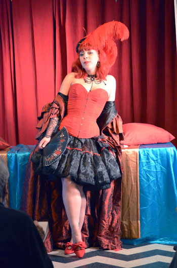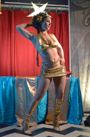 Want to know a secret? There was a wee bit of confusion here that shows just how awesome Reverend Valentine is. We accidentally gave her the impression that she was going to do her routine before the 5-minute poses, not after. So she held all four poses while hiding the true nature of her costume. That’s downright amazing, and as far as I know, no one noticed.