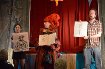 Thanks to Reverend Valentine inspiring everyone’s sketches with her sheer awesomeness; thanks to our wonderful sponsors Atomic Books, Flying Dog Brewery, and Baby Tattoo Books; thanks to Russell for slinging drinks and tunes; thanks to Jeff for the photos you see above and learning me on proper tripod use; thanks to Styger for manning the door and setup; thanks to Fred for lending a hand; and thanks to Alexis for her slick microphone wrangling.