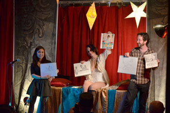 After another break, it was time for the first 20-minute pose which was also a contest. This time, we asked the audience for a random verb, and thus came about the Best Incorporation of “Sparkle” contest, for the remaining Atomic Book prize.
