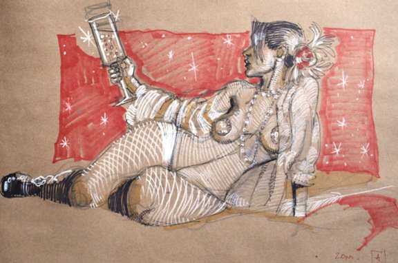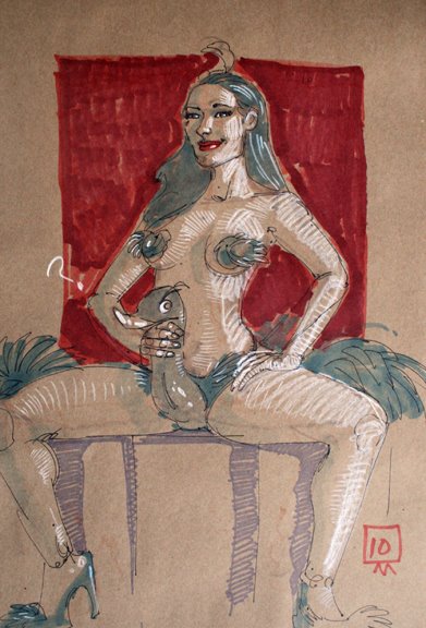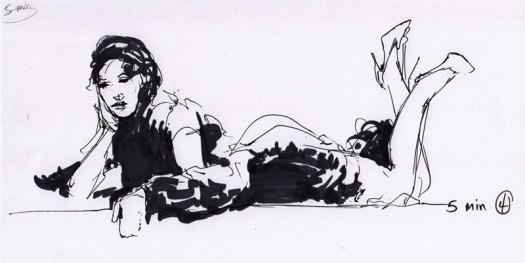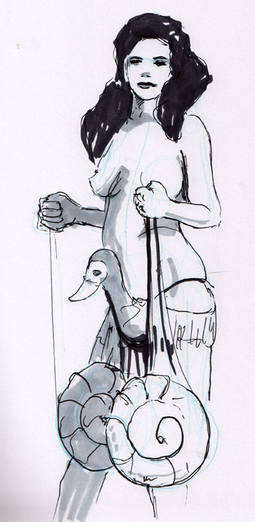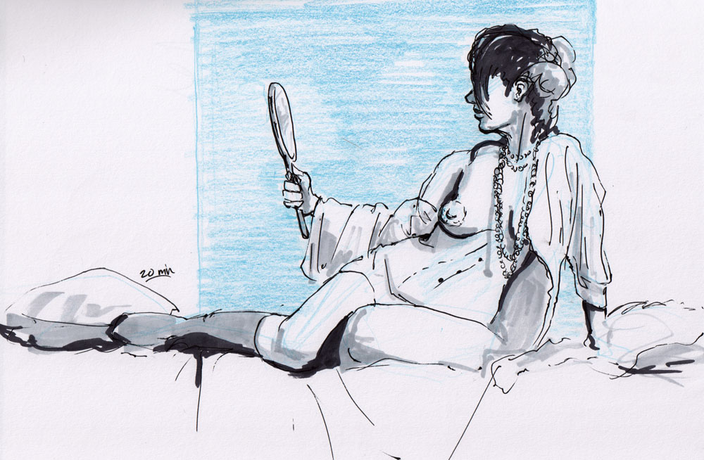 There was one last 20-minute pose of the evening, along with one last contest, which was a tribute to the B-movie director, Ed Wood, whose birthday was that day. The winner got to take home a copy of Karen Hsiao’s Rubber Duck, generously donated by Baby Tattoo Books, who also runs the Los Angeles branch of Dr. Sketchy’s.