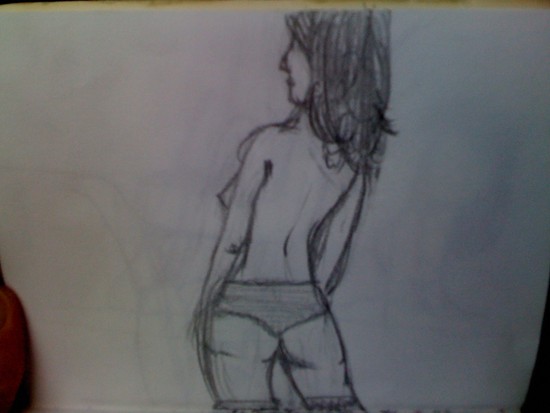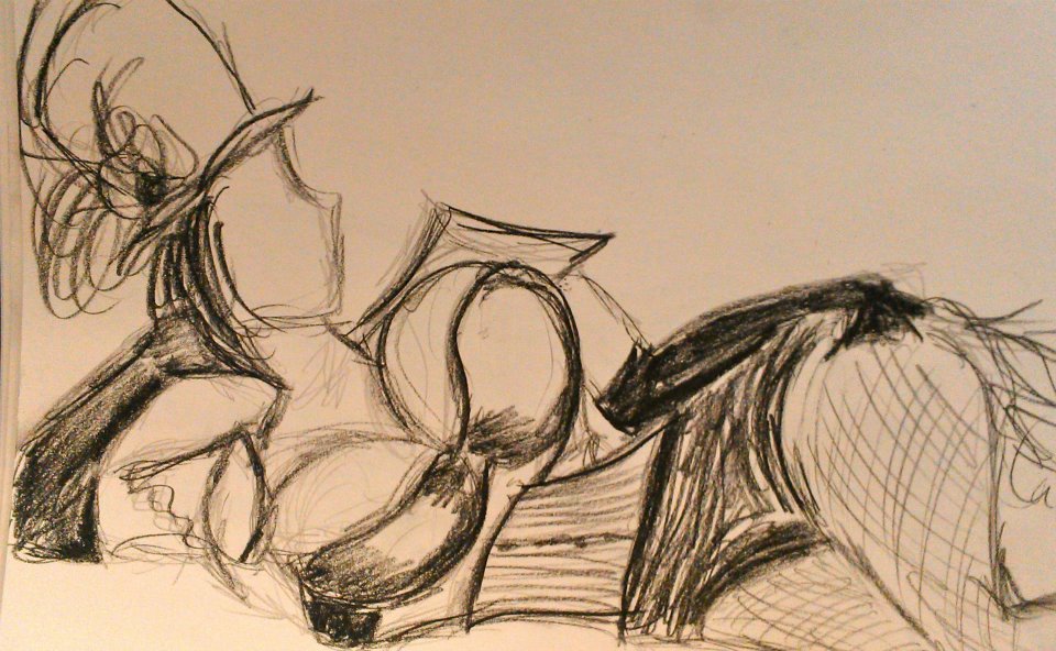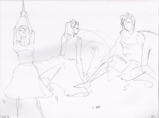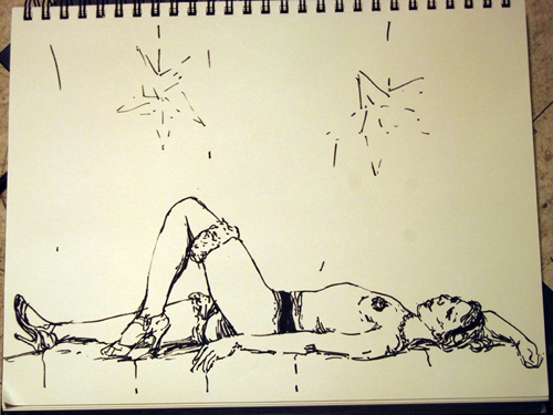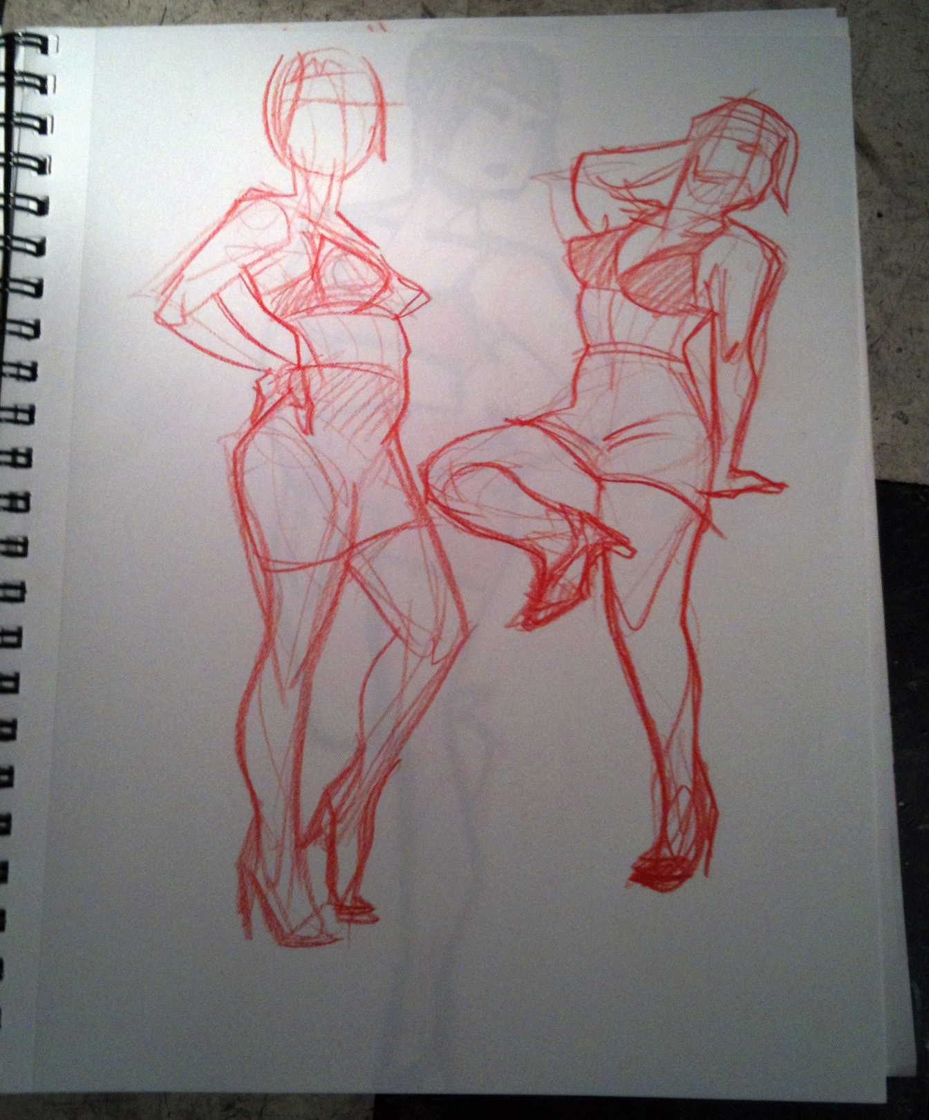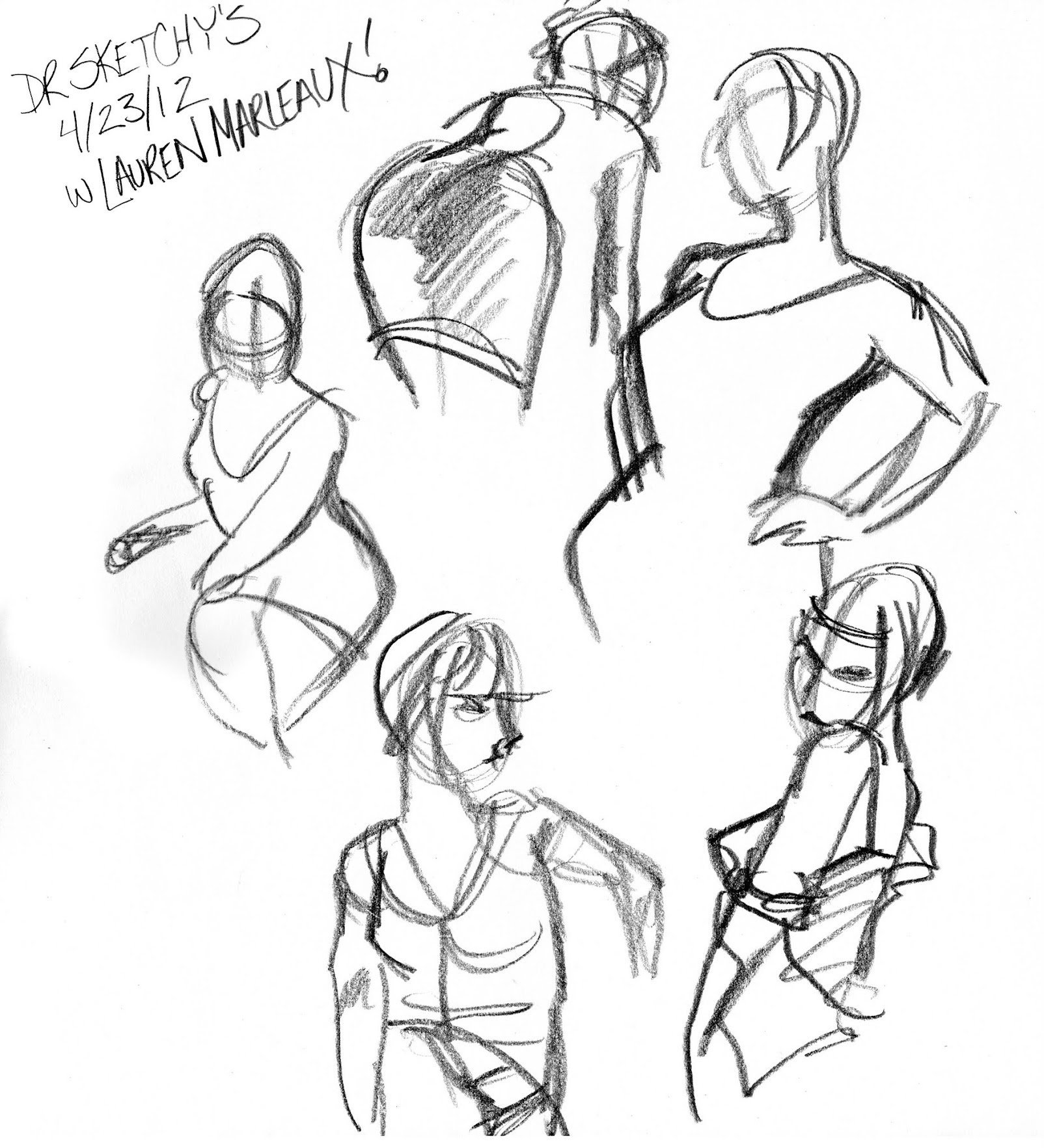 Anyway, after a quick break that night we rolled into the 5-minute poses, the first of which was the illustrious opposite-hand contest, where if you’re right-handed you draw with your left, if you’re left-handed you draw with your right, and if you’re ambidextrous you . . . uh . . . ummm . . . damnit.