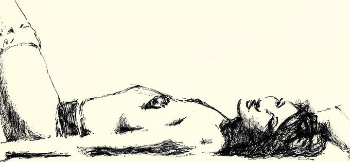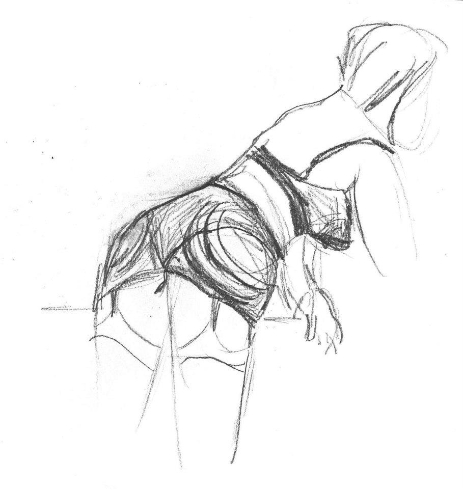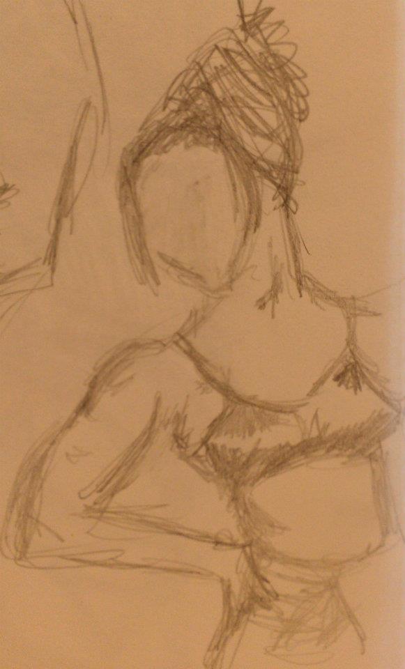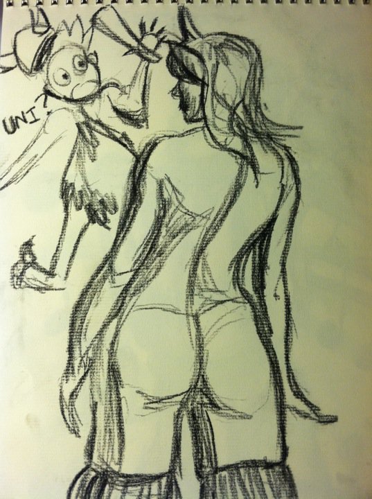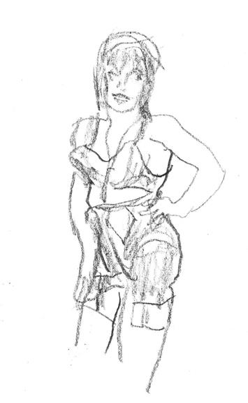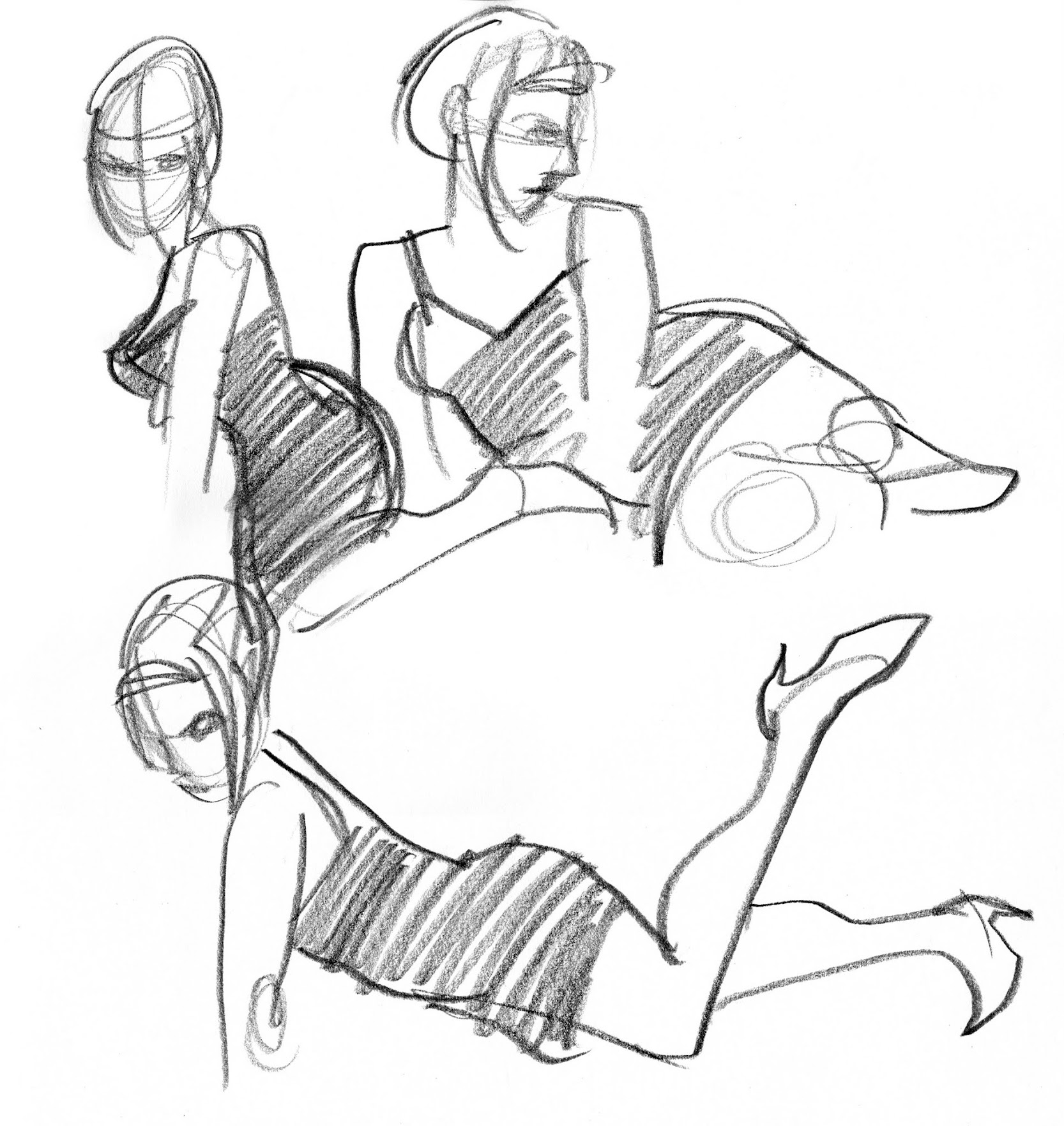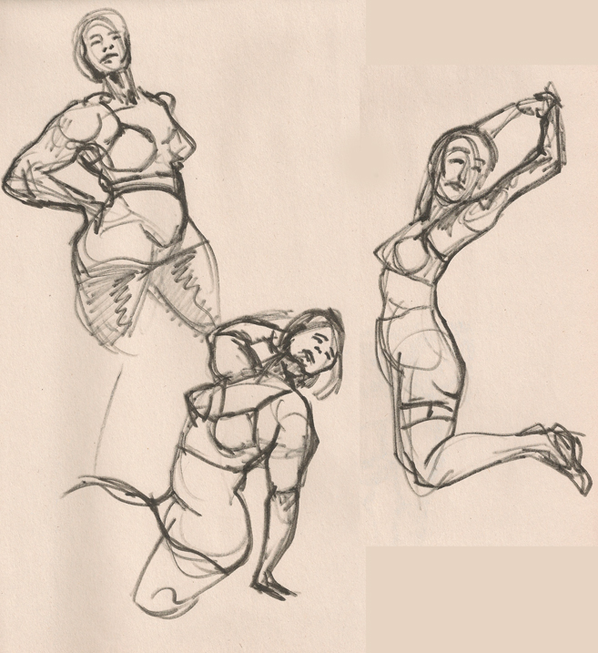 Anyway, after a quick break that night we rolled into the 5-minute poses, the first of which was the illustrious opposite-hand contest, where if you’re right-handed you draw with your left, if you’re left-handed you draw with your right, and if you’re ambidextrous you . . . uh . . . ummm . . . damnit.