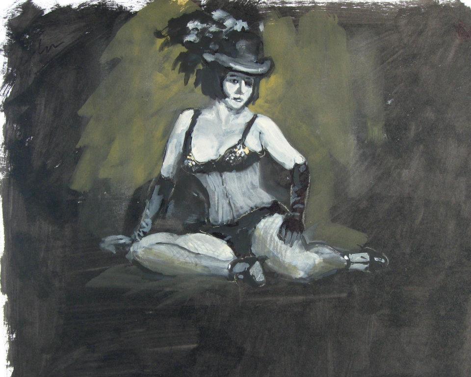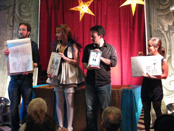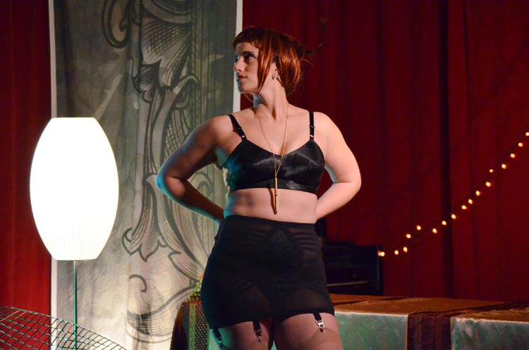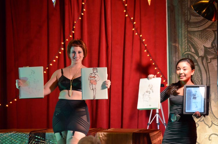 The second 10-minute pose was our second contest of the evening, ye’ old random noun contest. The crowd picked “oil spill” this time around. The winner received a pair of back seamed stockings from What Katie Did.
