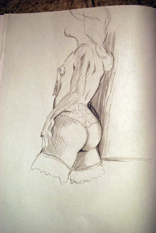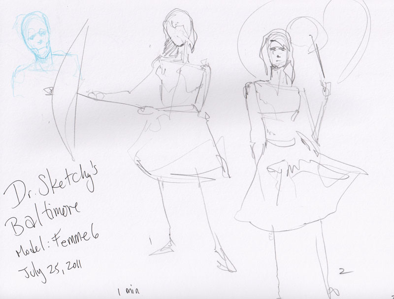 The winner took home a copy of Miss Mindy’s Sassy Paper Doll Bonanza, courtesy of Baby Tattoo Books, who also runs the L.A. Dr. Sketchy’s, so if there’s a trip out there in your future, definitely check them out. The second 20-minute pose was simply stunning, and simply a contest-free pose.