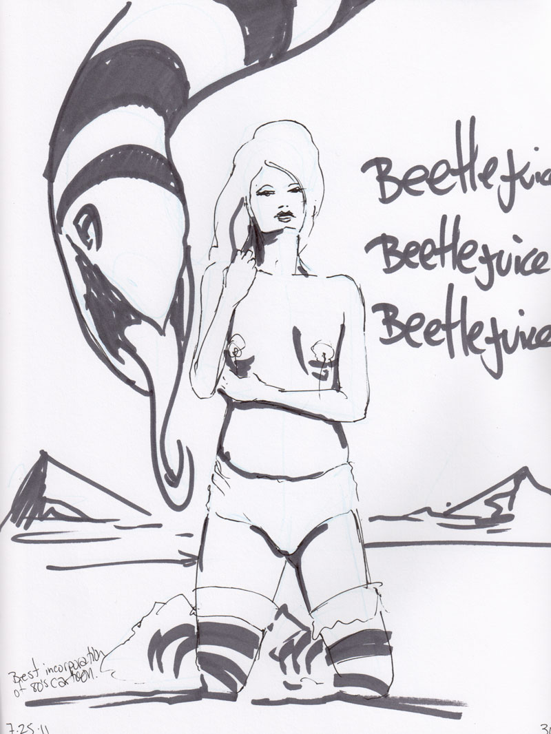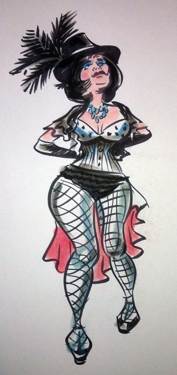 We’ll be back on September 12th, when lovely pin-up model/belly dancer Dahlia Derriere returns to Dr. Sketchy’s to pose for your drawing pleasure in a desert-themed evening. Doors open at 6, and drawing starts at 7, but really, show up early for a good seat. A drink or three before we get started will make those first post-break drawings not look too bad, too.