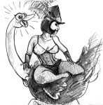 We had a bunch of contests: the ye’ old opposite hand contest, a “Put a bird on it!” challenge, and best incorporations of John Waters and Betty Page (who both had birthdays on or around that date), and gave away a giant bottle of Disobedience Abbey Dubbel from Flying Dog Brewery, Sparrow Vol. 0: Ashley Wood Sketches and Ideas from Atomic Books, and Symptomatica from Baby Tattoo Books.