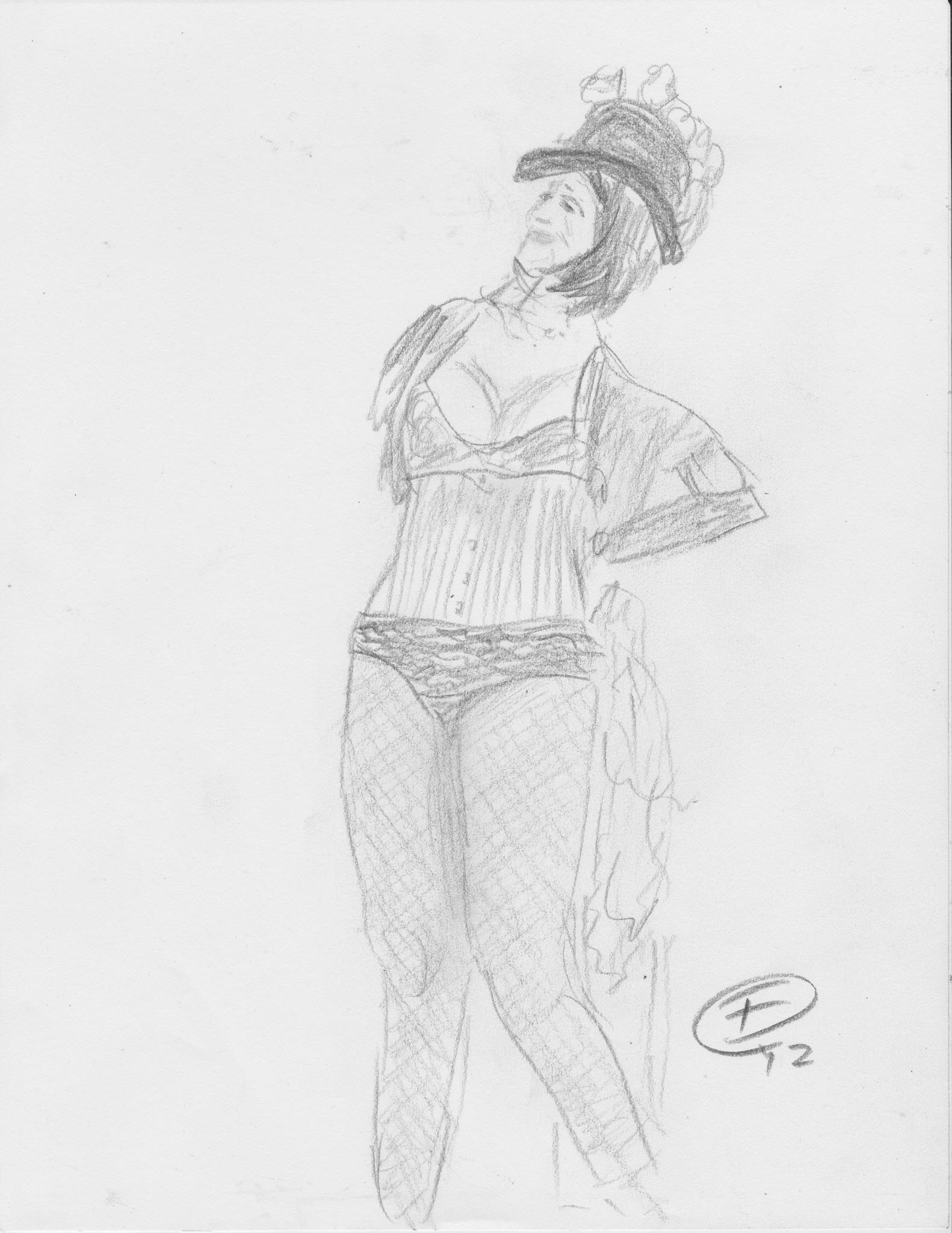 As I write this, we sit in the midst of the great Dr. Sketchy’s drought of 2011. Our last session, which seems a lifetime ago on July 25th, with Femme 6, was our last hurrah before we entered these dark times, and unfortunately it’s still over a week before Dahlia Derriere brings back the rain on September 12th. I don’t know what you’re doing to pass the time—keying paddle boats in the Inner Harbor? Attacking vicars with long-tailed cats? Watching Weeds on Netflix?