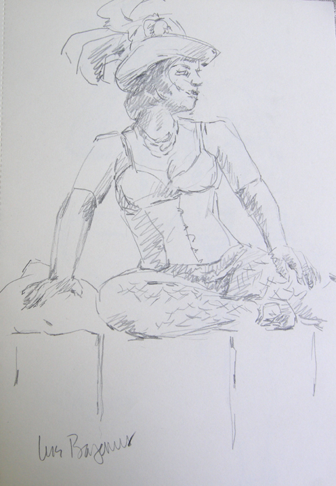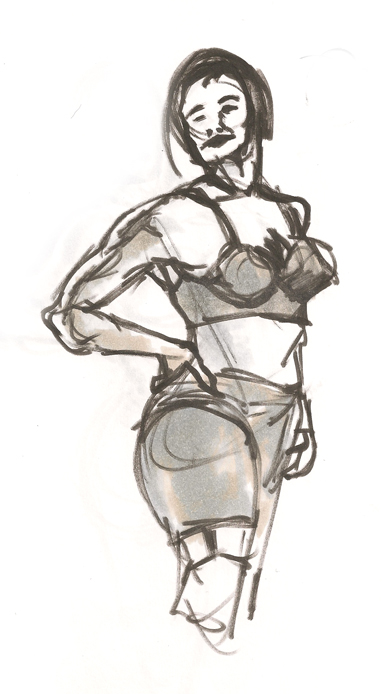 Last session was probably Little Luna’s last session ever at Dr. Sketchy’s Baltimore. In a few short weeks she’ll be on her way to New Orleans to become some sort of vigilante crimefighter-slash-shrimp boat captain. Why is she leaving us? Do we not have enough criminal shrimping operations for her to go all Batman on?