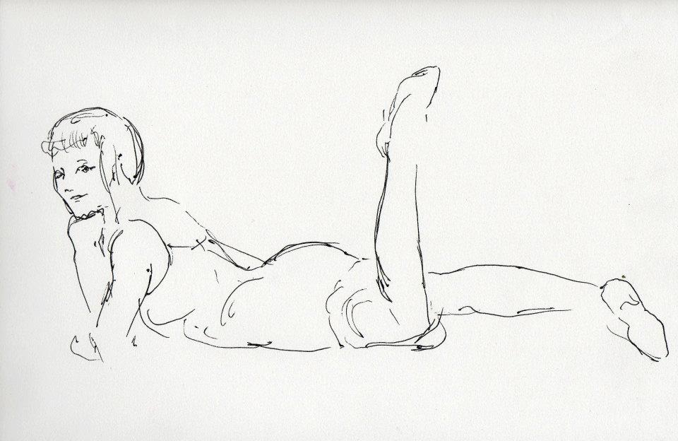 After the 1- and 2-minte poses, we took a quick break, and then it was time for the 5-minute poses, the first of which was the non-dominate hand contest. If you’re right-handed you draw with your left, if you’re left-handed you draw with your right, and if you’re ambidextrous we feed one hand to the shark.