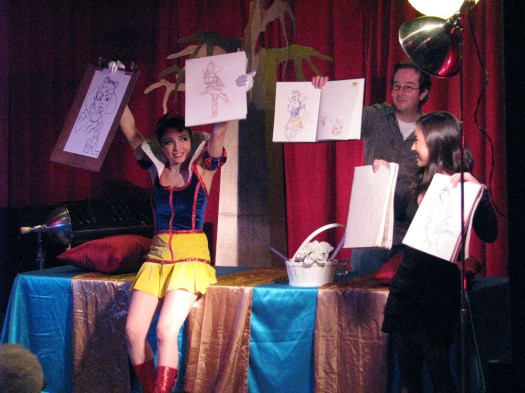 Everyone took a break to refill their drinks and then it was 10-minute pose time.  The first pose had a contest, the best depiction of “Disney Princesses Gone Wild,” with the prize being a Trikky mini vinyl DIY toy from Atomic Books.  Atomic Books is located on Falls Road just off the Avenue in Hampden.  If you haven’t been there before, you’re honestly missing one of the best indie comic shops in the country.