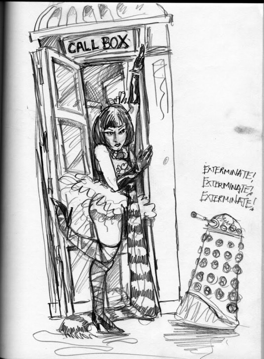 But the kids won this time, since this sole finalist referring to the source didn’t win the copy of the absolutely awesome Bettie Page: Queen of Hearts art book by Jim Silke, generously provided by Atomic Books in Hampden. But with or without the reference, all the drawings were awesome, and we’re a little sad that we didn’t get more scans of these. 😦