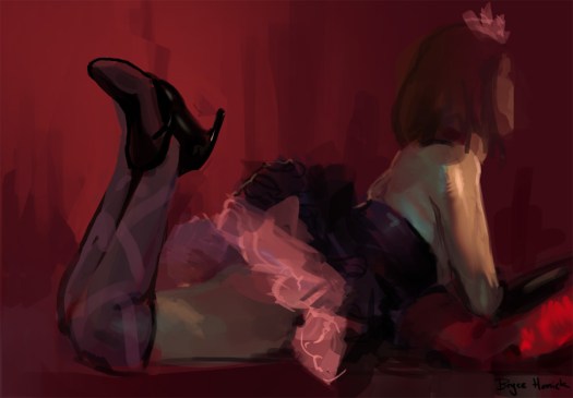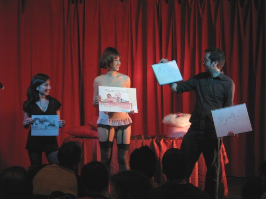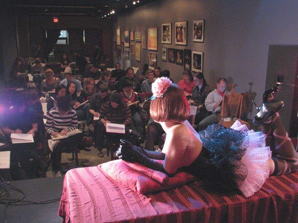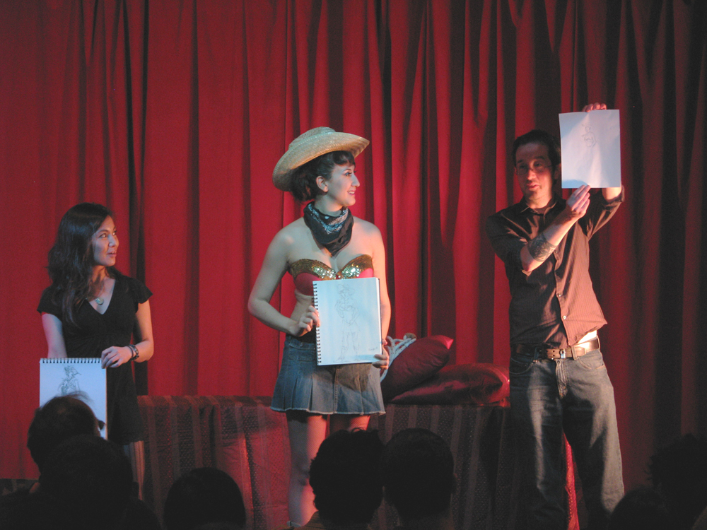 Join us tomorrow (or tonight, if you’re reading this at your desk with a bad case of the Mondays) for another awesome night of drawing, drinks, and crazy contests, when the fantastic ballerina/trapeze artist/fashion designer Nicolette Le Faye will be posing for your pleasure.