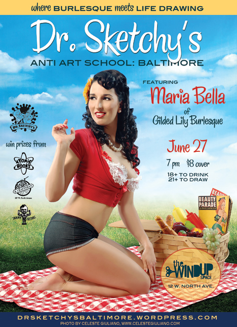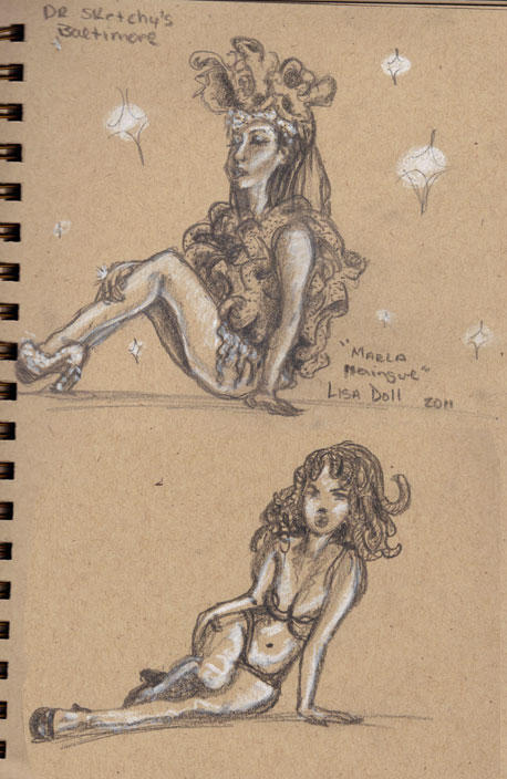 When’s the next Dr. Sketchy’s Baltimore? Ā Oh shit, it’s tomorrow, Monday, June 27th! Ā And it’s with Maria Bella of Gilded Lily Burlesque! Ā Maria posed for our anniversary session last year – which means this year, it’s like getting two anniversary sessions in a row!