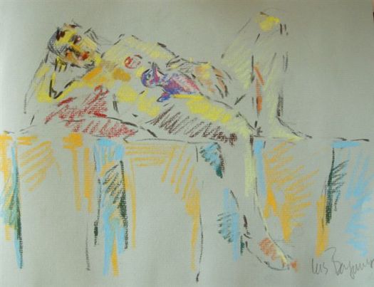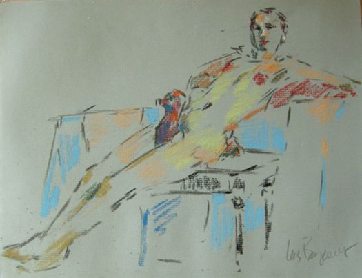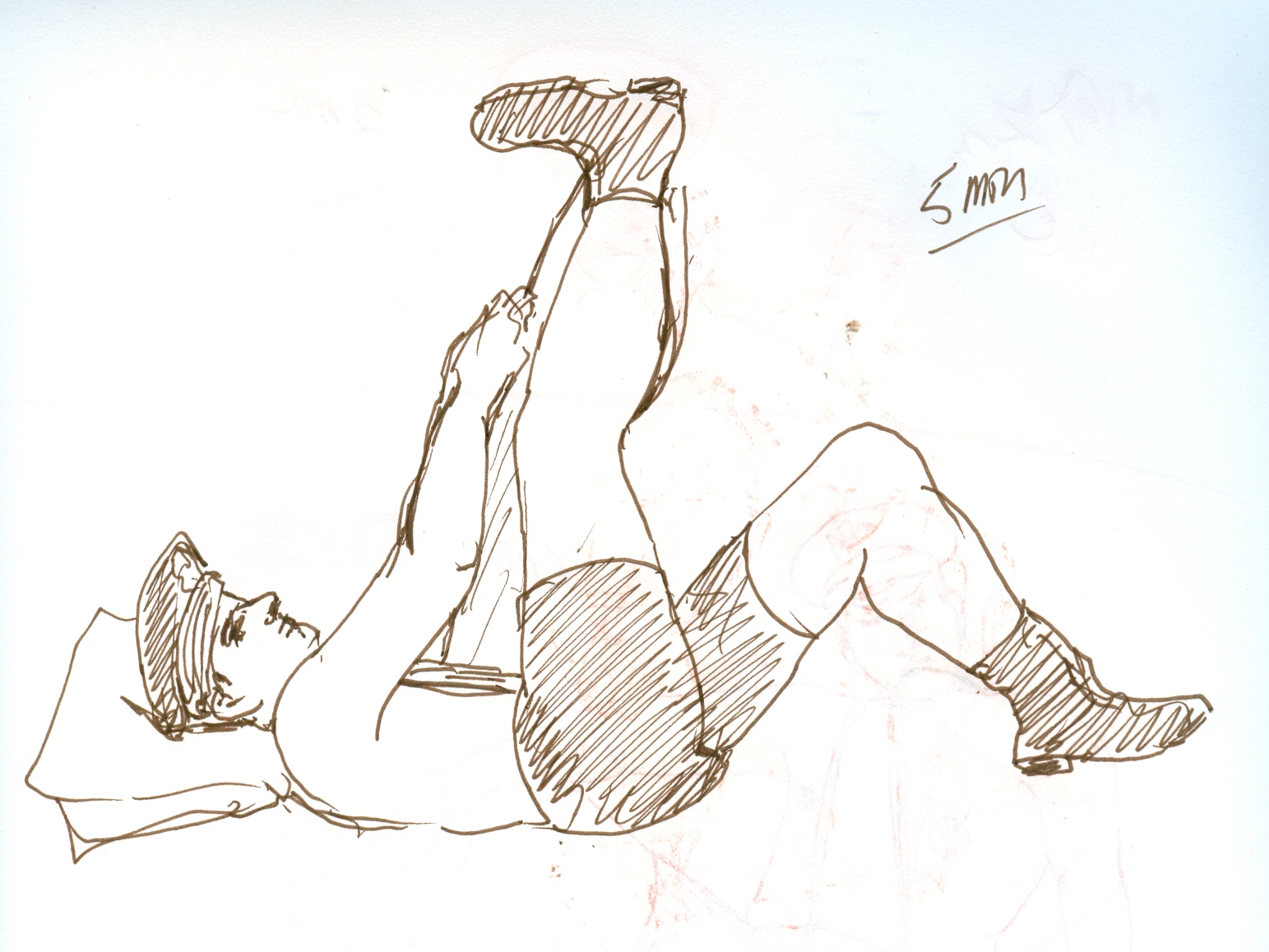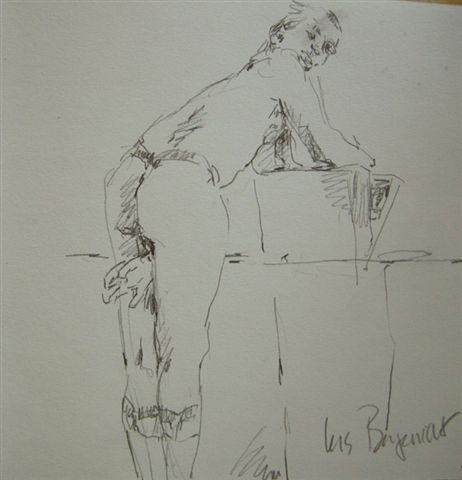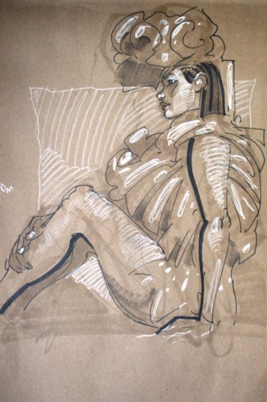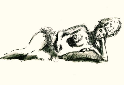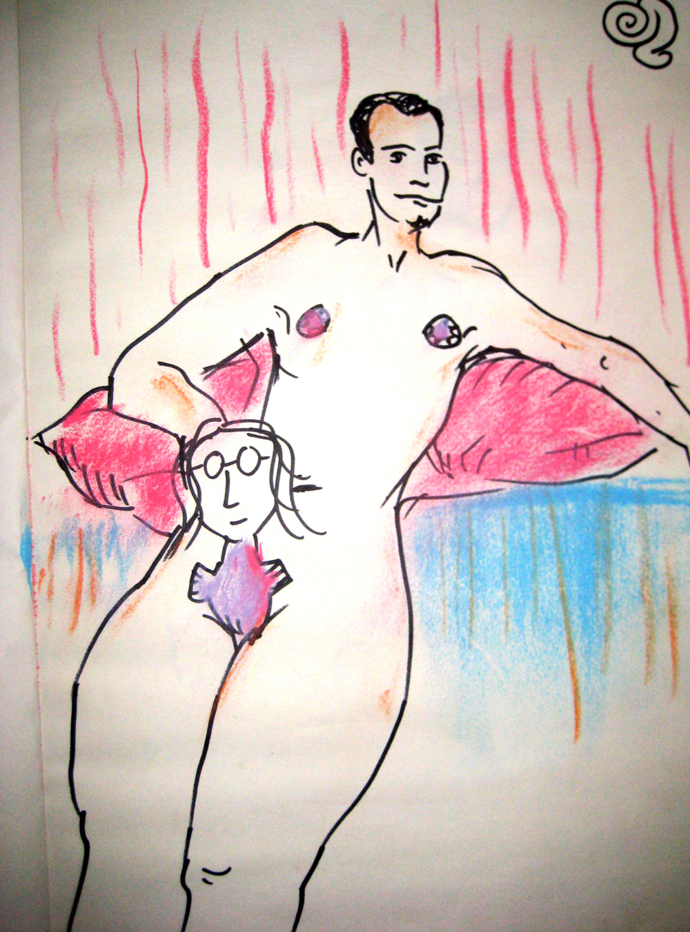 Anyway, the first 5-minute pose was the opposite-hand contest where if you’re right-handed you draw with your left and if you’re left-handed you draw with your right. Ā If you’re ambidextrous, you can go home cause no one likes you. Ā The two winners got mystery drinks from Russell behind the bar, who by the way, was kind enough to show up an hour early that day to let us set up all this crap.