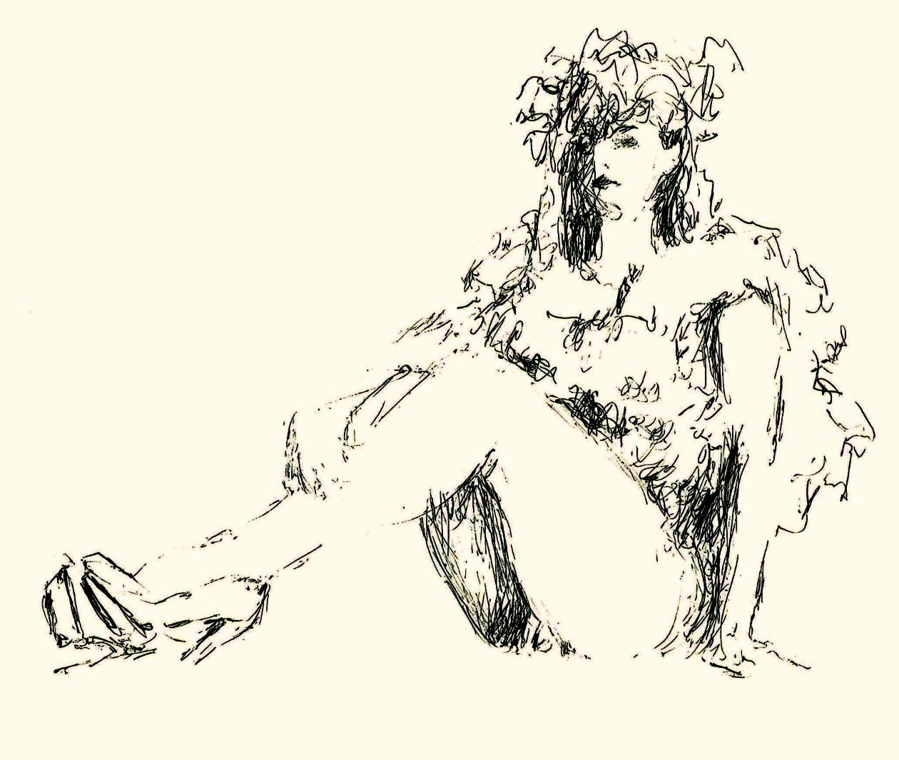 So, since we’re been taking our sweet time to put up the recap of Femme 6’s session with us, consider this the last call for sketches of our lovely model from that session, folks. Scan (or shoot with your camera phone) your drawings and send them to us at drsketchysbaltimore(at)gmail.com, or post them on our Facebook page’s wall. If you haven’t liked our page yet, do yourself a favor and go do that now: we update that page more often than the blog, so if you’d liked us already, you would have gotten a reminder about Poetry in Pasties before now, and you would have seen photos from our last session. (You could have also seen photos earlier if you followed us on Twitter.) But, since you’re reading this blog and we like you, here’s a photo from that night.