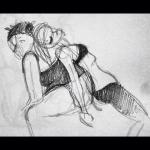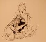 Paco Fish was originally supposed to model for this session, but at the last minute, he offered to give his session up for Sucre, who was visiting Baltimore from Montreal (which has its own amazing branch, by the way). I don’t think you can quite spot him in the video, but Paco was there at the bar shooting the breeze with us while folks were drawing. A week after that, he set off across the country on tour, which, unless he’s been arrested in the last twenty-four hours or so, he’s still on.